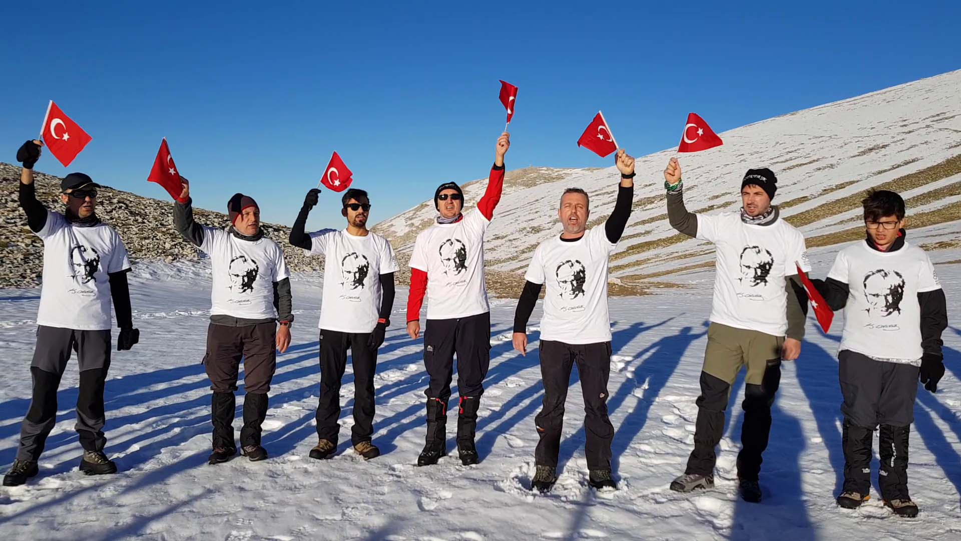 Dört tepeler sırt hattı üzerinde 1 kez mola vererek Uludağ tepe 2543 m. ulaştığımızda saat 10.45 göstermekteydi. Burada sıcak içecek ve dinlenme molası verildi. Ekibimiz tarafından Ulu Önder Mustafa Kemal Atatürk ve silah arkadaşları için saygı duruşunda bulunuldu ve İstiklal Marşımız okundu. Dün ve bugün açık bir havada bütün güzelliklerini izleyerek Uludağ'ın doğudan batıya geçişini yapıyoruz. Bu güzellikler eşliğinde katılımcılar tarafından alınan görüntüler yaşamları boyunca hatırlayacakları ve onur duyacakları hatıraları arasında yer alacağı şüphesizdir. İçten ve samimi duygularla katıldığımız, Cumhuriyetimizin 95. yıldönümü kutlama yürüyüşümüz yorucu olsa da hepimiz mutluyuz. Cumhuriyetimizi sahiplenmenin onuru ve gururu ile yolumuza devam ederek, Karataş tepe, Göller ayrımı, Rasat tepe, Rasat düzü, Kapı, Volfram üzerinden saat 14.30 da İkinci Yerleşim'de ekibimizi bekleyen araçlarımıza ulaştık. Uludağ, Kirazlı yayla'da, Cumhuriyet yürüyüşüne katılan dağcı sporcularımıza Nilüfer Belediyesinin verdiği kumanya ikram edildi. Burada yapılan veda konuşması ile katılımcılar tekrar buluşma dilekleri ile Bursa'ya, faaliyetimizin başlangıç noktası olan Bursa, Kapalı Spor Salonu önüne hareket etmiştir.