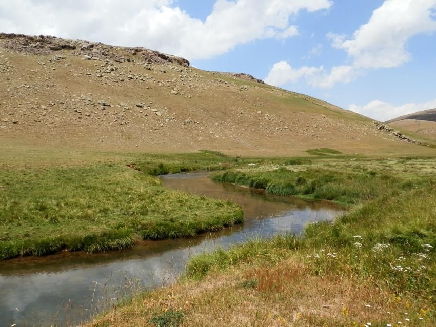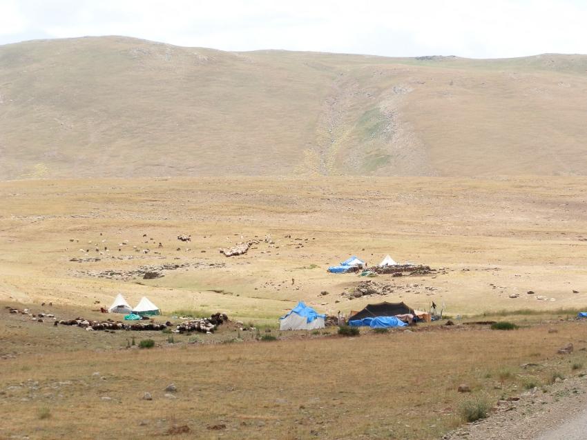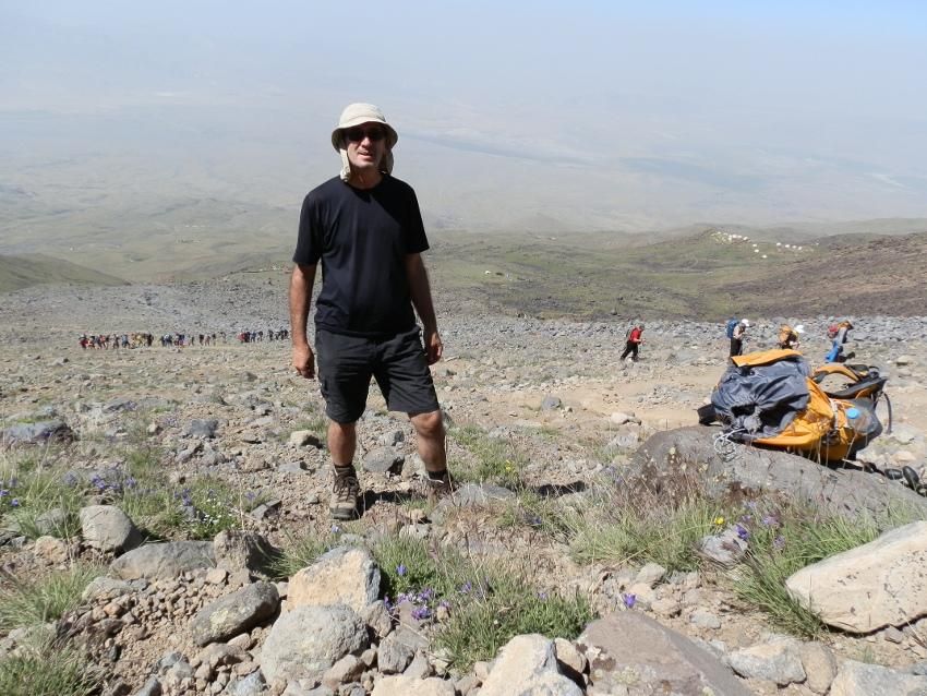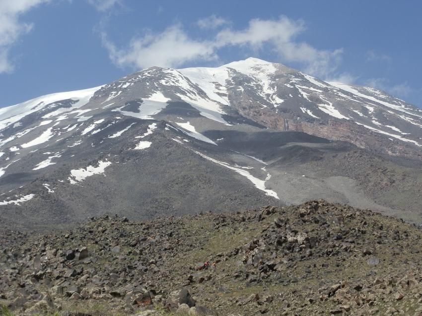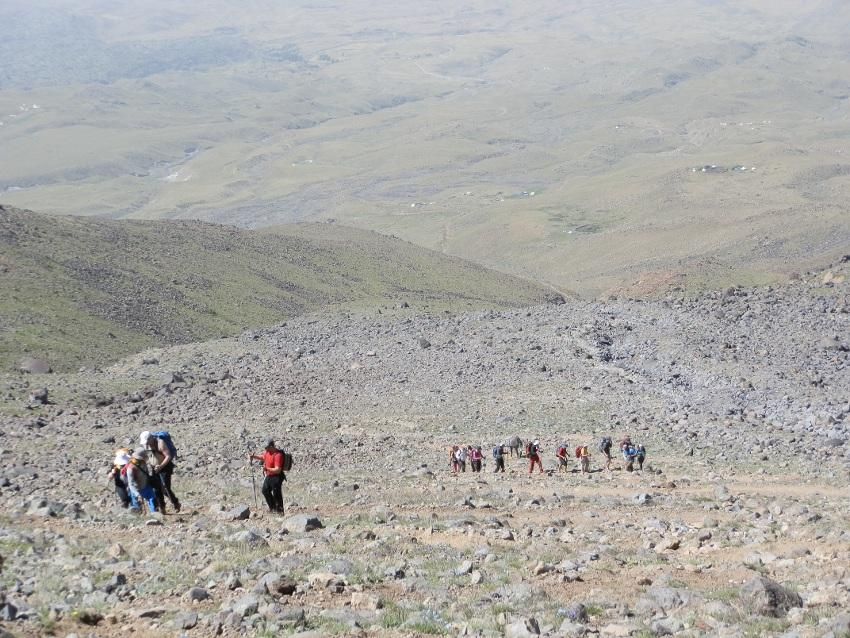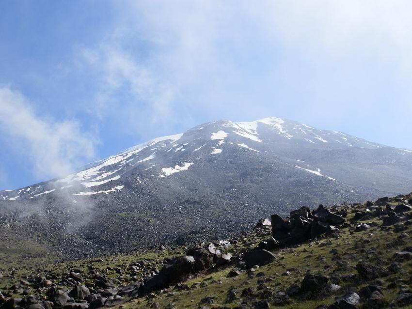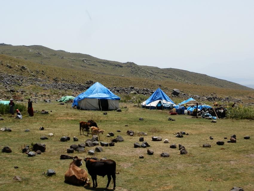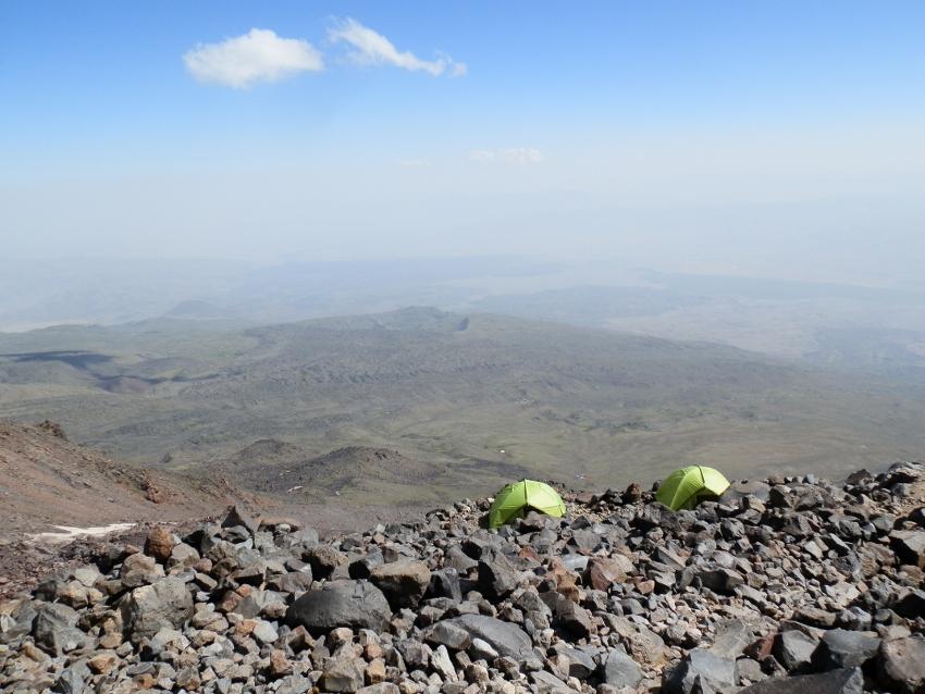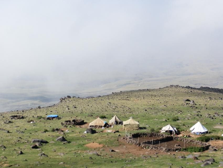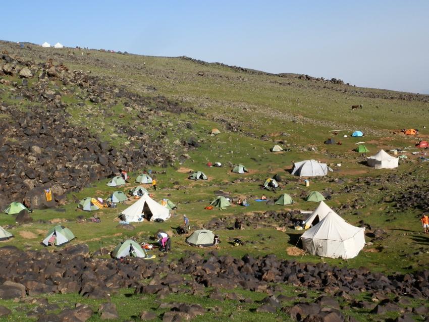 15 Temmuz 2013 Pazartesi: Bu faaliyet boyunca bana ve birlikte tırmanacağım üç Polonya’lıya reheberlik yapacak, ulaşım ve yiyecek içecek ihtiyacımızı karşılayacak Nuri arkadaşımız sabah 08:30’da gelerek bizi otelden aldı ve Eli köyüne kadar aracıyla götürdü. Eli köyünde araçtan inerek kamp yükümüzü katırlara vererek, kişisel malzemelerimizi küçük sırt çantamıza koyduk ve yaklaşık iki saatlik bir yürüyüşle, yaylalardaki göçer çadırlarının yanlarından geçerek 3200mt kamp alanına vardık. Burada çadırımı kurduktan ve hafif birşeyler atıştırdıktan sonra, basınç farkına adaptasyon sağlamak amacıyla düşük tempoyla 3600mt ye kadar çıkıp tekrar kamp alanına döndüm. Güzel bir akşam yemeğinden sonra, şarıldayarak akan dere kenerana kurduğum çadırımda dinlenmeye çekildim.
