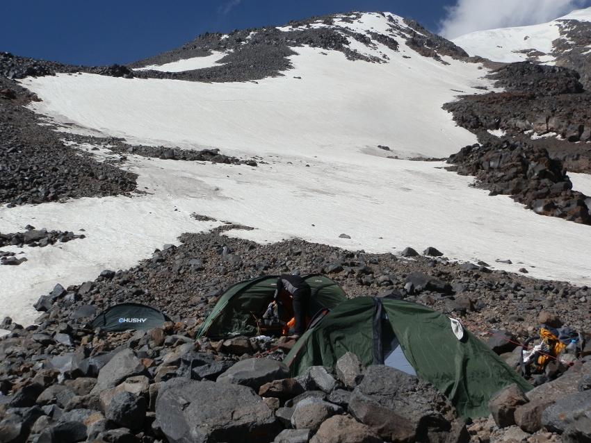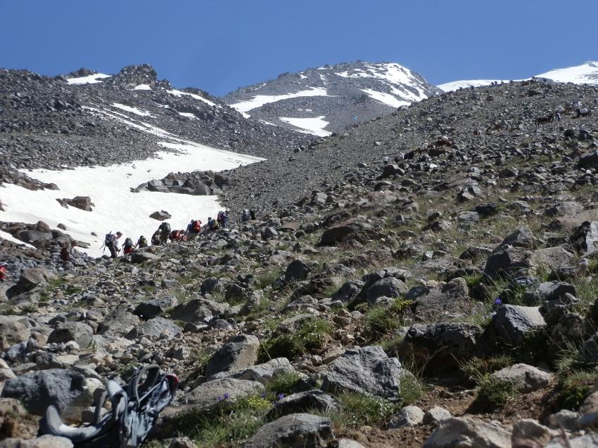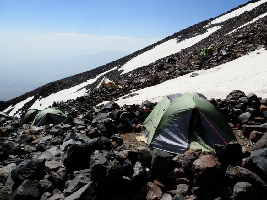 16 Temmuz 2013 Salı: Sabah oldukça zinde bir şekilde kalktım, eşyalarımı ve çadırımı toplayarak sağlam bir kahvaltı yaptım. Sonrasında 4200’e doğru çıkışa başladım. Mevsim nedeniyle çevrede bol miktarda yeni açmış çiçekler vardı ve ilk bir kaçyüz metre bu durum çıkışı daha da zevkli kılıyordu. 4200 mt’ye ulaştığımda doğa şartlarının sertliği ve havanın serinliği kendini gösteriyordu. Çevre tamamen taşlık olduğu için, daha önceden çadır kurmak için düzenlenmiş bir boş alan bularak çadırımı kurdum. Akşam saat 18:00 gibi yemeğimizi yiyerek, gece 01:00 de zirve tırmanışı için kalkmak üzere arkadaşlarla anlaştık ve dinlenmek üzere çadırlarımıza geçtik.