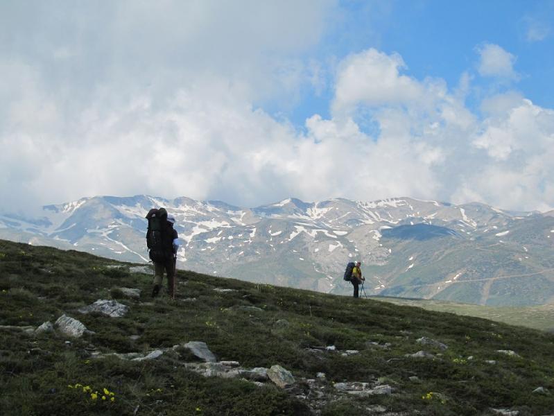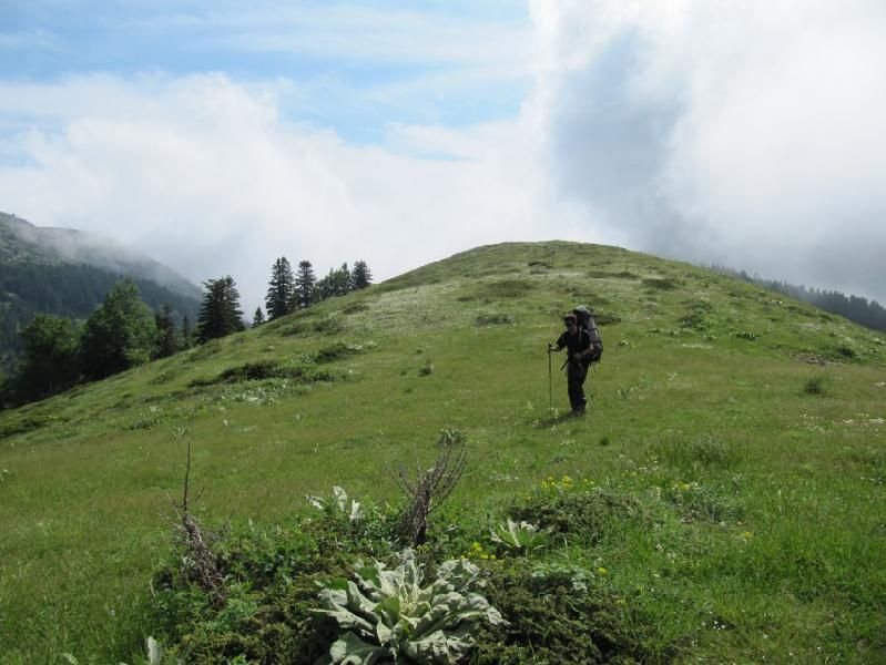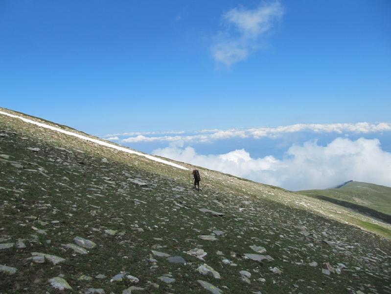 Balabancık yaylayı geride bırakıp biraz ardıç, biraz çayır, daha çok kayalık, eğimli arazide, yan geçişlerle vadilere girip çıkıyoruz. Kayaların içinde hayat bulmuş, alpin çiçeklerinin güzellikleri karşısında, sırt çantalarıyla eğilip kalkmak zor olsada, fotoğrafçılık yapmaktan geri durmuyorum. Yürüyüşümüzü 1900 m. seviyesinde sürdürüyoruz. Kuzuyatağı 1900 metre seviyesinde, 1940 m. çıktığımızda Şamilin yükselmeyelim uyarıları yamaçlarda yankılanıyor.