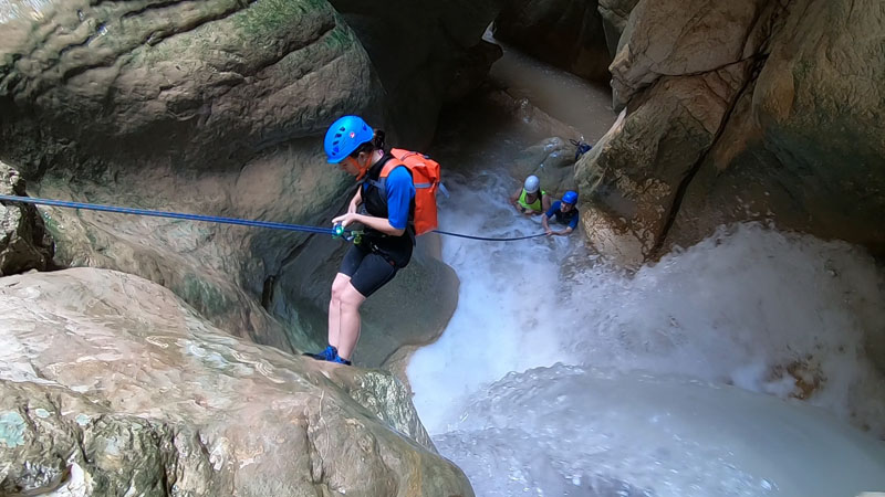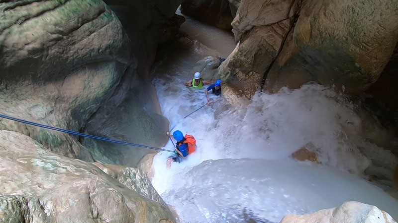 Koyunlu kanyonu geçişi aşağıdan yukarı, şelale tırmanışı yapıldı.