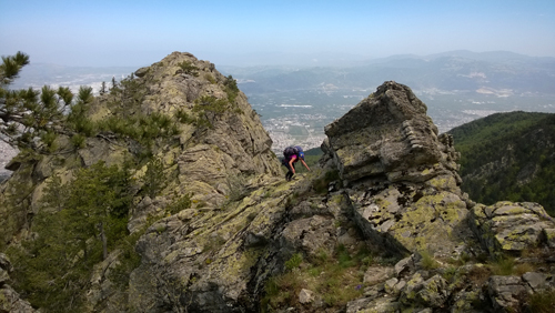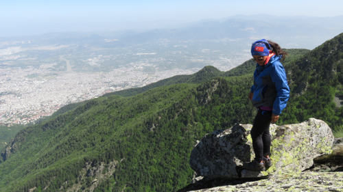 13,14 Mayıs 2016. 13 Mayıs Cuma Kaplıkaya'dan 07.20 Buzluca patikası'na hareket edildi. İki saatlik yürüyüş sonunda Bakacak kulvarları karşısına gelindi. Yarım saat, çay, kahvaltı molası ile aşağıdan rota incelendi. Şiddetli lodos fırtınası ormanı oluşturan yeşil örtüyü hırçın bir deniz gibi dalgalandırıyor. Patika dereye kadar takip edilmedi. Mola verdiğimiz kaya bloğunun dibinden 200 m. dik bir eğimle vadiye inildi. Dere içinde su akmadığını görünce hayal kırıklığına uğradık. Buraya güvenerek yanımıza az miktarda su almıştık. Dere içinden hareketlendikten kısa süre sonra çok temiz bir su kaynağı karşımıza çıktı. Sularımızı takviye ederek dikine yükselmeye başladık. Sağa, sola geçit vermeyen kaya kütleleri sizi yukarıya yönlendiriyor. Bu durum rotayı şaşırma riskini de ortadan kaldırıyor. Bir süre sonra hafif sağa geçerek kendinizi ana kulvarın içinde buluyorsunuz. Karşımıza çıkan arazi içinde basamağı andıran toprak üzerinde oluşan izleri görünce burada yaşayan canlılar olduğunu düşünüyoruz. Siyah dışkılar da bunu destekliyor. Uludağ'ın yabani hayatının en önemli canlılarından Boz ayı ile karşı karşıya gelmek istemiyoruz. Bunun için arasıra yüksek sesle bağrarak çıkışımızı yapıyoruz. Kulvar sol tarafı dik ve tutamaksız kaya zemin, sağ tarafı çıkılabilir olarak ikiye bölünüyor. Sağ tarafı takip ederek çıkıyoruz. Şu ana kadar faaliyetimizi batonlarla sürdürüyoruz. Teknik bir çıkış gerektirmiyor. İki saatlik yükseliş sonunda daha önce de gecelediğimiz kaya kütlesinin üzerine geldik. Saat 12.20 göstermekte. Hava belirsizliğini koruyor, bulut geçişleri, şiddetli rüzgar olmakla beraber ısı yüksek. Gecelemek için yerimizi berleyip çantaları bıraktık. Yukarılara doğru biraz yükselerek çevreyi araştırmaya çıktık. Akşama daha çok var. Arazi içinde kayaların gizlediği farklı güzellikler olabilirdi. Çevreyi keşif ve yağmur yağarsa sığınmak için uygun yer bakıyoruz. Bulunduğumuz nokta kaya kütlesinin üzerinde bir meşe ağacının kökünün oluşturduğu kuş yuvasını andıran bir yer. Sağımız kaya duvar, altımız bir insan boyu inişle küçük ve eğimli bir set, sonrası uçurum. Solumuz ve üstümüz dikkatle geçişe izin veren bölümler. Şehrin ve Bursa ovasının üstüne nem hafif bir sis gibi çökmüş. Zaman zaman yayılıp dağalara doğru yükseliyor. Şiddetli rüzgara rağmen yüksek nem görüşü azaltıyor. Gündüz gözü ile akşam yemeğimizi yiyoruz. Rüzgar biraz azalmakla hızlanmak arasında gidip geliyor. Şehirden bakıldığında insana heyecan veren devasa kaya uzantılarının üzerindeyiz. Burası tam anlamıyla vahşi bir doğa parçası. Uludağ'da ayıların fazlaca görüldüğü bir bölge. Normal olarak bir ayı ile karşılaştığınızda ayı yolunu değiştirir uzaklaşıp gider. Ancak burada gidecek yer açısından sorun var. Ayı burada kendisini tehdit altında görüp saldırıya da geçebilir. Daha evvel 4-5 defa Ayı ile karşılaştığım oldu, ama burada olduğu kadar tedirgin hiç olmadım. Uludağ'da ayı saldırısına uğrayan kişiler olarak literatüre geçmek istemiyoruz. Buraya gelmekle bunları göze almış oluyoruz. Geçen geldiğimizde ayı, bağırışları ile bize karşı hoşnutsuzluğunu göstermişti. Yavrusu olan bir ayı ile karşıkarşıya gelindiğinde ne yapacağını insan kestiremiyor. Gece hava açık, Bursa ışıkları elimizle tutacakmış kadar yakın. Vadiden gelen rüzgarın uğultusu doğanın gücünün sesi olarak kulaklarımızda yankılanıyor. Burada adeta bir kartal yuvasındayız. Kartal ailesinin yuvasında nasıl gecelediğinin deneyini yapıyor gibiyiz. Ayşe bana rüzgarın mola verdiği bir sessizliğin içinden sesleniyor. - İsmet ağbi bir şiir yaz bu geceyi anlatan. Nasıl bir ayrıcalıktır burada olmak, sağlıklı olmak, bunu yaşayabilmek insanın ruhunun arındığı yerdeyiz. Baktığımız binlerce ışık bir aileyi bir insanı temsil ediyor. Bu ışıkların her biri, farklı yaşamları içinde barındırıyor. Aşk, acı, hüzün mutluluk, doğum ve ölüm var bu ışıkların içinde. Bizler kısa süreliğine bu çemberden kaçmış gibiyiz. Günün ilk ışıklarında, hep yanımızda olan ancak şimdi varlıklarını hissetiren kuşlar, coşkulu bir konsere başlıyorlar. Sabah çayımızı, ayaklarımız boşlukta, altımızda, Kaplıkaya vadisi’nin iki yamacının yeşil çerçeve misali ortasında görünen şehri izleyerek yudumluyoruz. Çayın tadı, havanın tadı, görmenin tadı bir başka. Saat 08.50 gösteriyor, sözün bittiği, gitme vaktinin de geldiği anlar. Toparlanıp vuruyoruz yukarıya. Eğim gittikçe dikleşiyor bundan sonra yan geçişler olmakla birlikte, bayağı tırmanarak çıkıyoruz. Büyük kayanın dibine ulaştığımızda sol tarafta bulunan kulvara geçişin var olduğunu tespit ettik. Ama girmiyoruz, bu kayaya çıkmak daha fazla aktivite ve heyecan anlamına geliyor. Toprak alanlarda dikkatli olmaya çalışarak bazen kaya bazen bitkilere tutunarak kısa bir pasajla kayanın sırtına çıkılan son bölüme geldik. Dünden beri içinde bulunduğumuz kulvar bizi bu koca kütleye kadar getiriyor. Karşınıza üç seçenek çıkıyor, solda dar ve dik kulvar, kaya kütlesinin ortasında çok dar ve çok dik kulvar ve üçüncü seçenek olarak kulvarın sağından kayanın sırtına çıkmak. Geçen yıl ki çıkışımızı aynı yerden yapmıştık. Buradan çıkacaklara önerimiz, yanlarında 1-2 sikke bulundurmak, 7 mm. 20 m. yardımcı ip çok faydalı olacaktır. Malzemesiz de çıkılabilir, ama fazla risk almış olursunuz. Bu tırmanış bölümü sonrasında yürüyerek kayanın üzerine çıkılabiliyor. Kaya üzerine çıktığınızda ödülünüzü alıyorsunuz. Buradan Bursa'yı ve çevreyi izlemek büyük bir ayrı