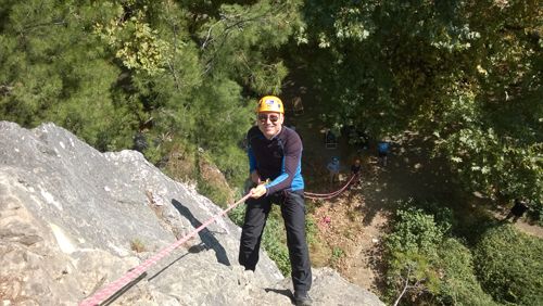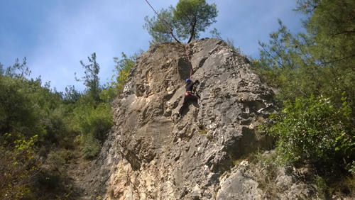 Narlıdere vadi içinde, üstten emniyetli kaya tırmanış çalışması yapıldı.