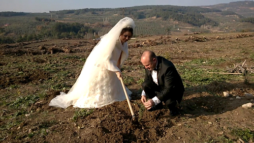 Sosyal sorumluluk projelerimiz çerçevesinde her yıl İlköğretim okulu öğrencileri ile birlikte fidan dikiyoruz. Doğaya karşı bilinç uyandırmaya yönelik bu çalışmamızın kulübümüz üyesi Nefise Sağ ile Yıldırım Dağcılık üyesi Şamil Ordu'nun evlilik gününe rastlaması, gelin ve damadın konuk olarak aramıza katılmasıyla etkinliğimiz daha anlamlı görüntülere sahne oldu.