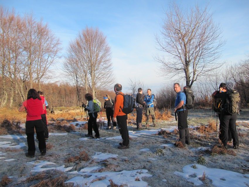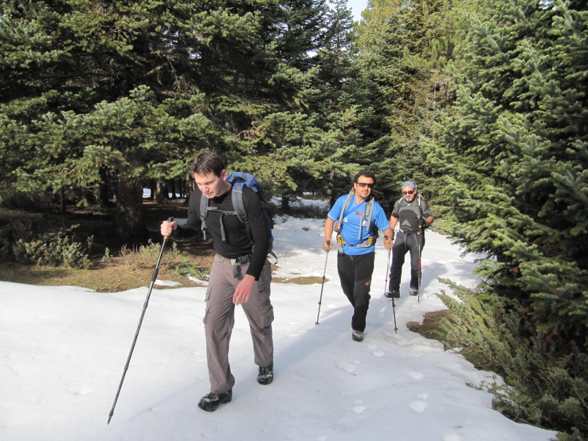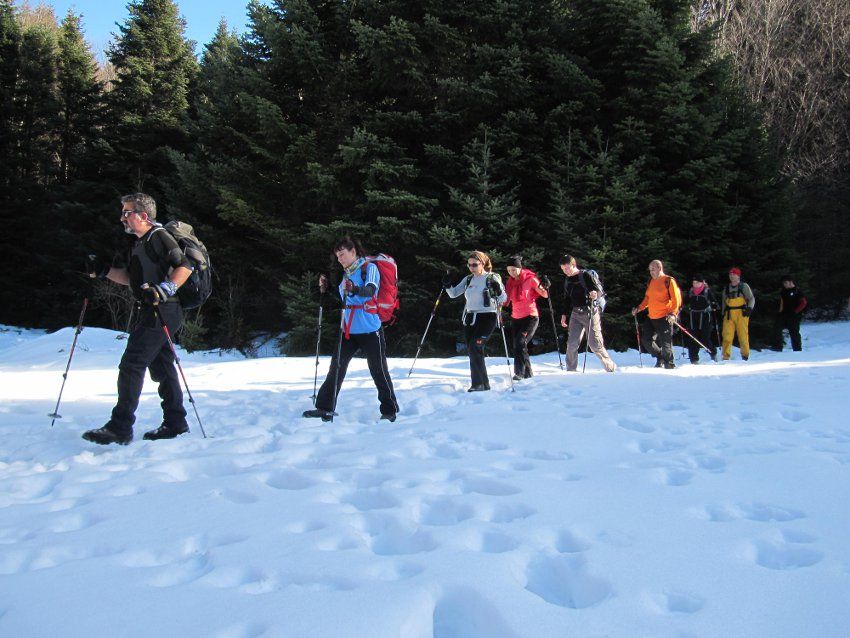 Erikli Yayla dan sonra yükseldikçe, sonbaharda dökülmüş ve kışın soğuk rüzgarları ile neredeyse donmuş olan yapraklarla dolu patikalarda ilerlemeye başladık. Bu durum tempomuzu biraz düşürse de büyük bir zevkle başladığımız faaliyette ancak ve ancak biraz daha yormuş oldu bizi, geride kalan arkadaşlarımızın gruptan kopmaması için belli zaman aralıkları ile tempoyu biraz daha hafifleterek ilerledik. Saat 09:00da Ab-ı Hayata varmıştık. Kimi yerde vadileri yan geçişlerle kat ediyor, kimi yerde irili ufaklı derelerden geçiyor, önümüze çıkan engelleri grupça yardımlaşarak, herkesin bir ardındakine el uzatması ile aşıyorduk. Saat 10:00da Domuz Yayla da ufak bir mola daha verdik. Mevsim normallerinde olan hava sıcaklığı düşük olmasına rağmen sürekli hareket halinde olan grup, içindeki doğa sevgisi ile soğuğu bir an olsun hissetmeden hedefine şaşmadan ilerlemekteydi.
